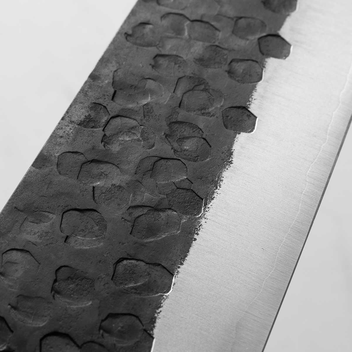 This knife is made from a high-carbon steel and as such, will require a little more care than a regular off-the-shelf knife. It must be dried shortly after use, as prolonged exposure to moisture can cause rust spots to appear. A very light coat of oil during storage also helps to prevent rust spots. A patina (colouration and seasoning of the steel) will occur with use.