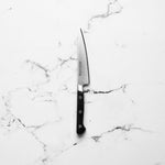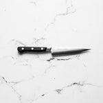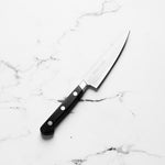 The Petty knife, a quintessential tool in Japanese cuisine, is a smaller utility knife used for precise, delicate tasks. Often considered a smaller sibling to the chef's knife, it excels in hand-held tasks like peeling, trimming, and intricate cutting. Its versatility makes it an essential for detailed culinary work.