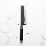 The Nakiri knife, revered in Japanese culinary traditions, is engineered for exceptional vegetable cutting. Featuring a distinct, straight-edged, and rectangular blade, it excels in creating uniform, precise cuts and aesthetic presentation. Its technical design ensures efficiency and precision, making it a valuable tool for both professional chefs and home cooks.