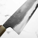 Japanese Blue Steel #2, or "Aogami" #2, is a revered high-carbon steel alloyed with low amounts of chromium and tungsten. It strikes an excellent balance between durability, edge retention, and ease of sharpening. Slightly more ductile than Blue #1, it's widely used in crafting traditional Japanese knives, beloved by chefs for its resilience and sharpness, albeit is slightly softer than Blue 1.