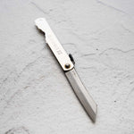 Discover the time-honored tradition of Japanese craftsmanship with our stunning Higonokami knives. The Higonokami, a traditional Japanese pocket knife, features a unique friction-folding design and a razor-sharp blade that has been masterfully forged using ancient techniques. These knives are not only functional tools but also true works of art, showcasing the beauty and skill of Japanese blade smithing.