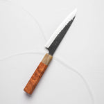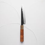 The Petty knife, a quintessential tool in Japanese cuisine, is a smaller utility knife used for precise, delicate tasks. Often considered a smaller sibling to the chef's knife, it excels in hand-held tasks like peeling, trimming, and intricate cutting. Its versatility makes it an essential for detailed culinary work.