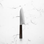 The Santoku knife, a classic in Japanese kitchens, translates to "three virtues," symbolizing its proficiency in slicing, dicing, and mincing. With a shorter, versatile blade and a balanced design, it's ideal for a range of tasks, from cutting meat to chopping vegetables, making it a beloved all-purpose tool.