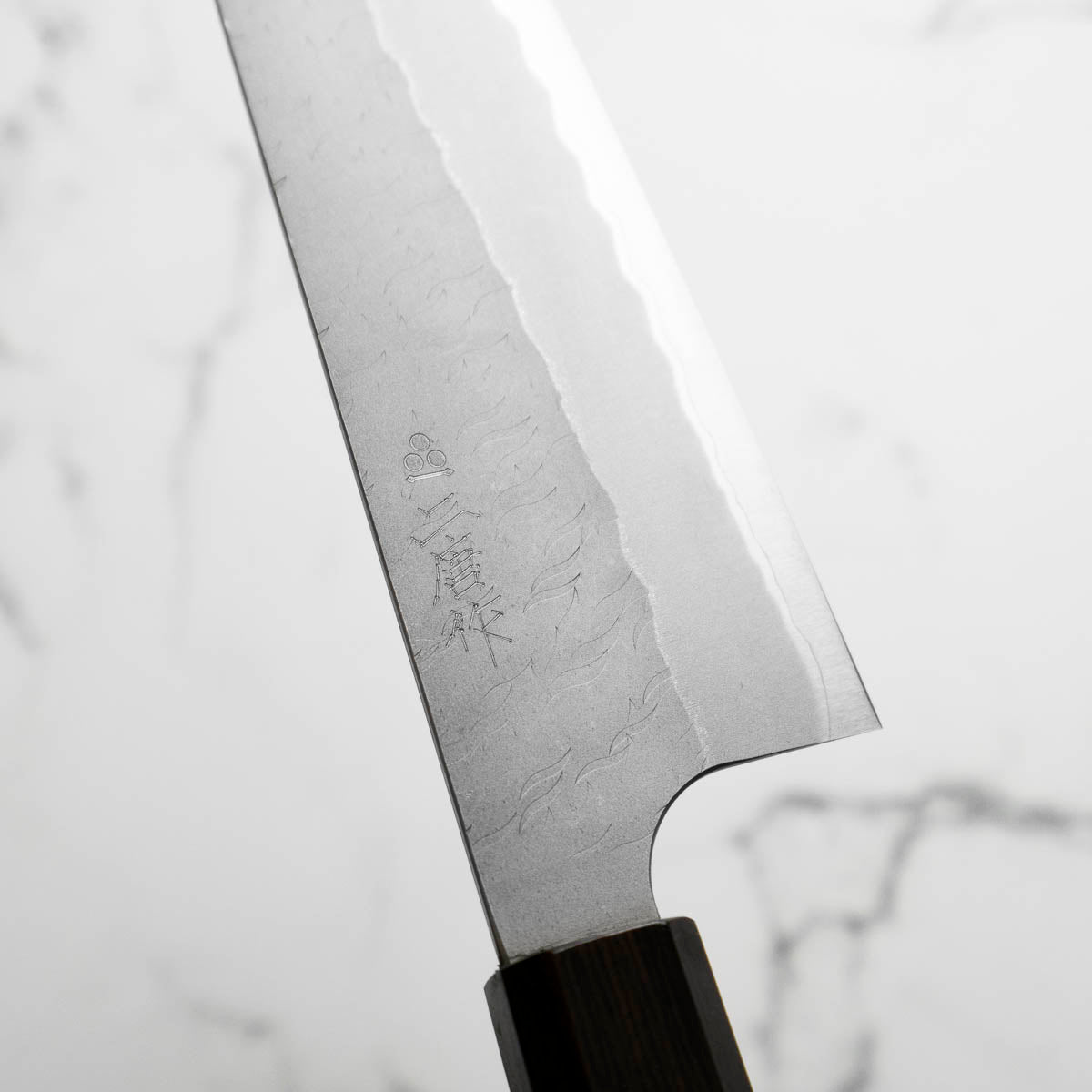 Nigara Hamono Blue Super Migaki Tsuchime Santoku 180mm - Ebony