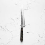The Sujihiki knife, a traditional Japanese slicer, is designed for carving and fileting. With its long, narrow blade, typically ranging from 240mm to 330mm, it excels in creating clean, smooth cuts through meat and fish. Its length ensures long, uninterrupted strokes, making it perfect for precise slicing tasks.