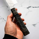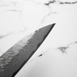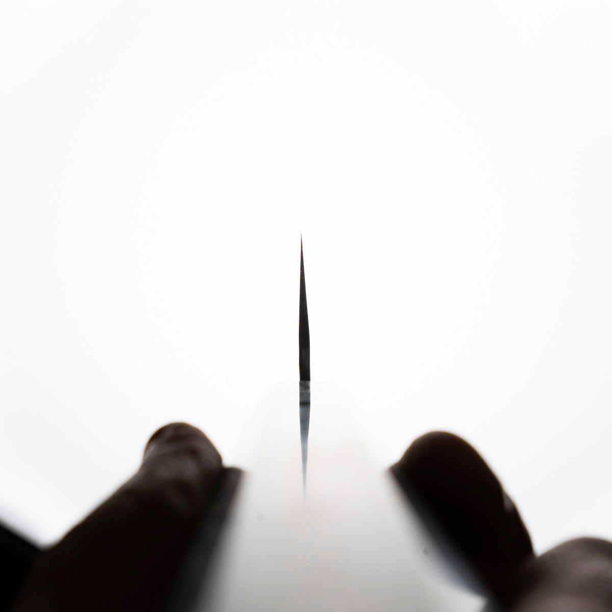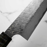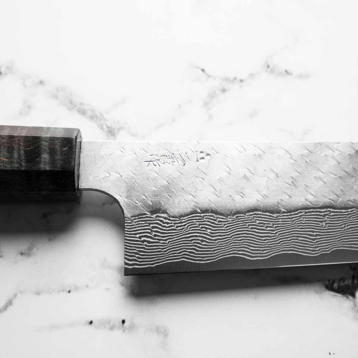Nigara Hamono are truly some of the most experienced knifemakers in Japan. Now on their 8th generation of blacksmiths, they are masters at stainless damascus forging and heat treatment. The Anmon Damascus we have available have a matte finish and are polished underneath, resulting in a brilliant visual contrast.