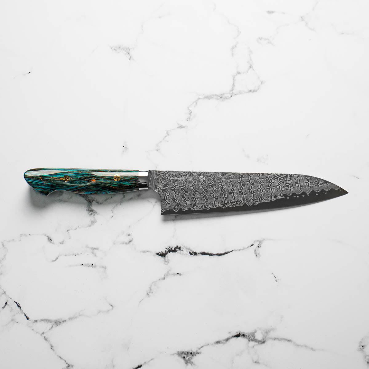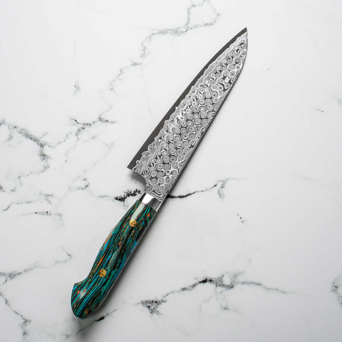 Nigara Hamono SG2 Raindrop Damascus Gyuto 210mm - Turquoise