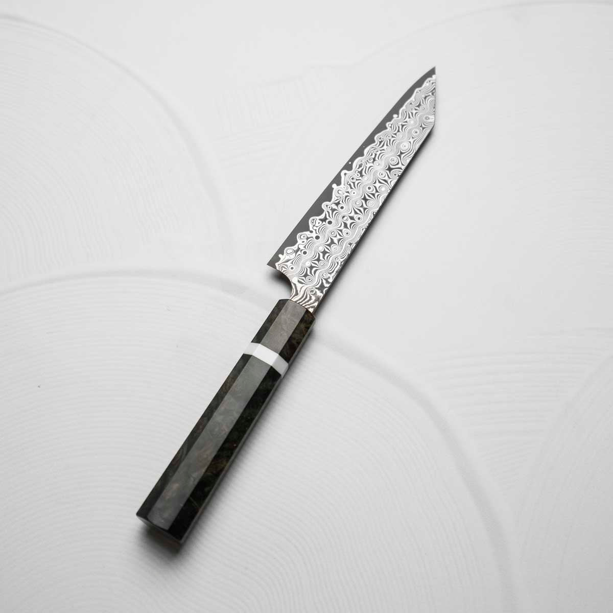 The Petty knife, a quintessential tool in Japanese cuisine, is a smaller utility knife used for precise, delicate tasks. Often considered a smaller sibling to the chef's knife, it excels in hand-held tasks like peeling, trimming, and intricate cutting. Its versatility makes it an essential for detailed culinary work.