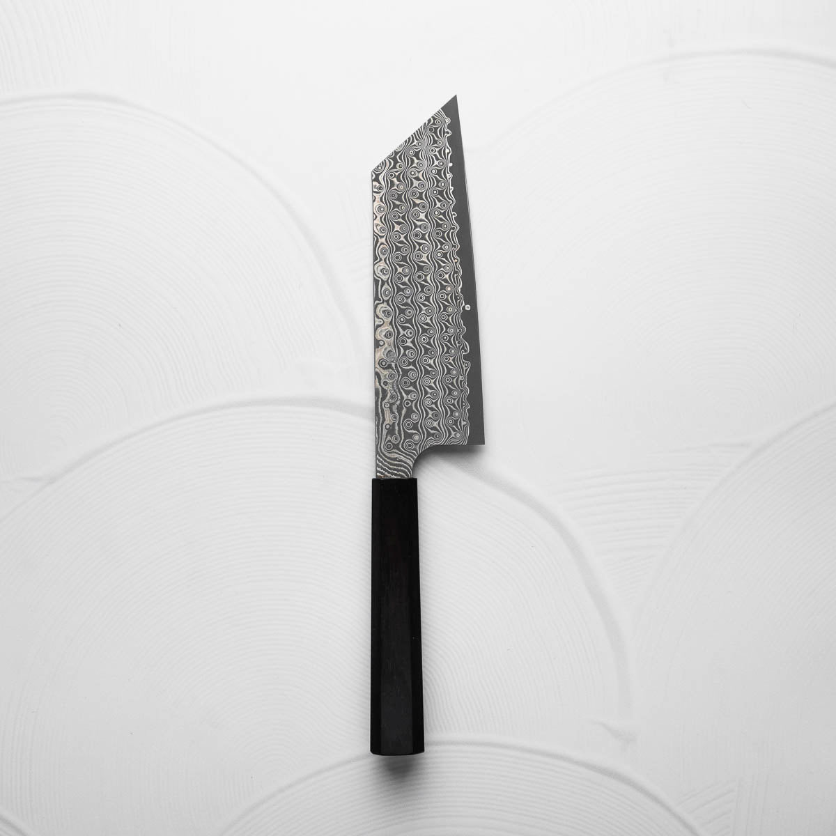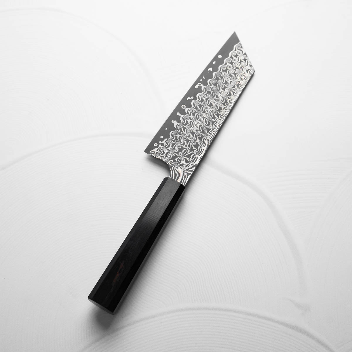 Nigara Hamono SG2 Raindrop Damascus Kiritsuke Nakiri 180mm - Ebony