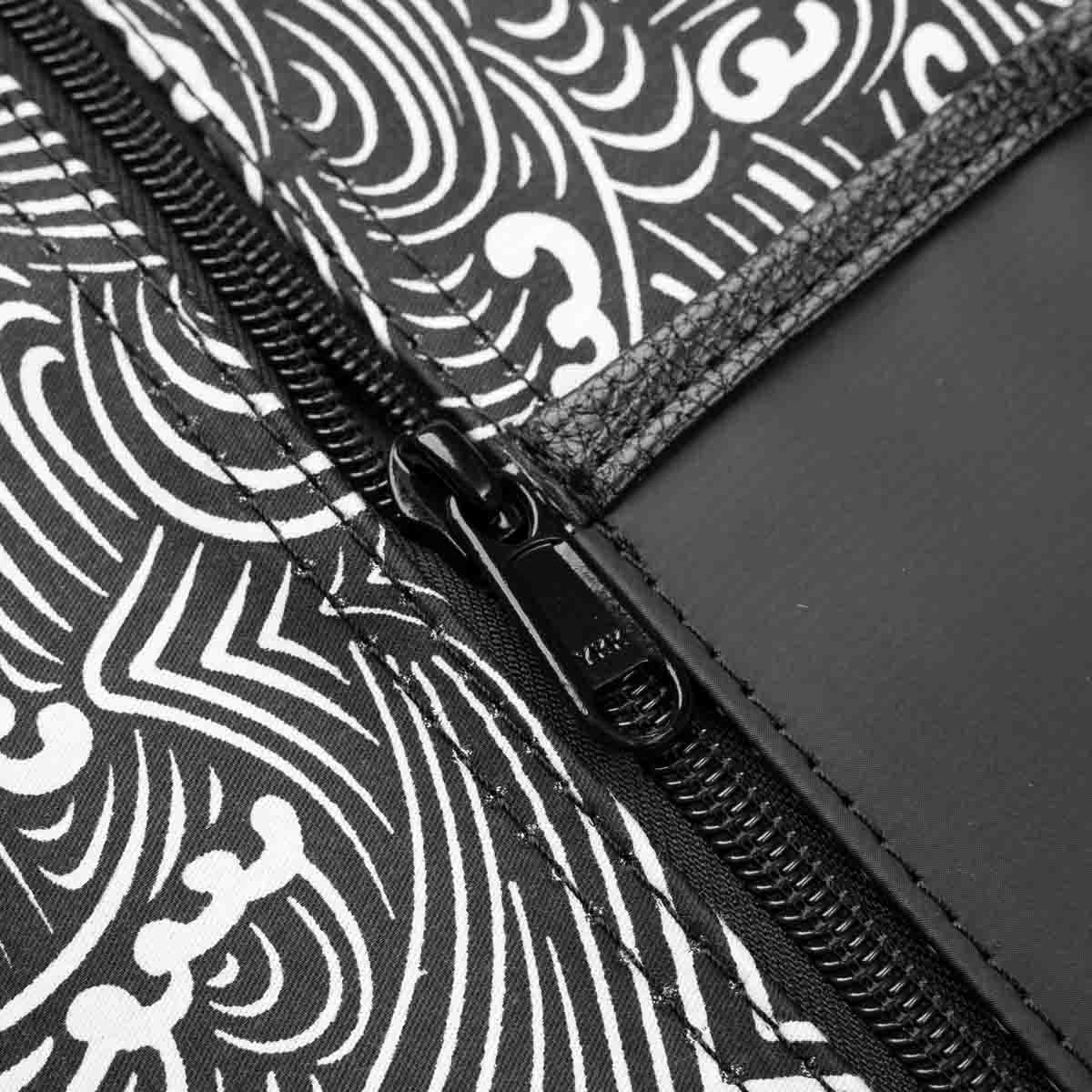 Elevate your culinary travels with the assured protection of the 5 Pocket 1000D PVC Chef Knife Bag. This fundamental bag is meticulously crafted for both accomplished chefs and emerging culinary talents, showcasing a streamlined roll-up design paired with five dedicated knife pockets. This version is lined with a beautiful grey and white Hokusai inspired wave pattern.