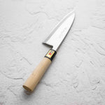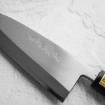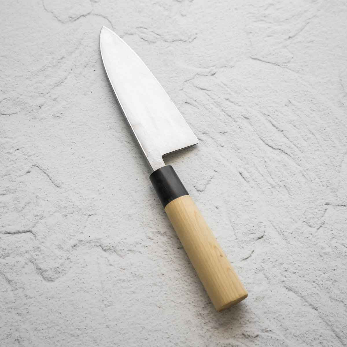 The Deba knife, deeply rooted in Japanese culinary tradition, is a robust, single-bevel knife (sometimes double) primarily designed for fileting fish. Its thick, heavy blade effortlessly glides through fish bones and joints, while preserving delicate flesh. Ideal for seafood preparation, the Deba is a staple in Japanese kitchens for its precision and strength.