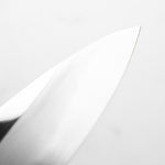 This knife is made from a high-carbon steel and as such, will require a little more care than a regular off-the-shelf knife. It must be dried shortly after use, as prolonged exposure to moisture can cause rust spots to appear. A very light coat of oil during storage also helps to prevent rust spots. A patina (colouration and seasoning of the steel) will occur with use.