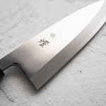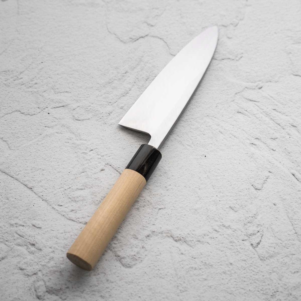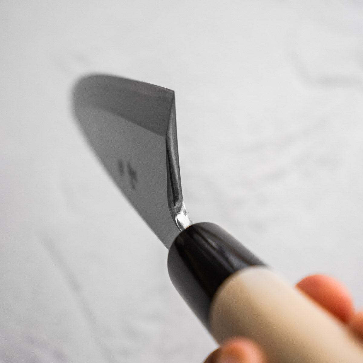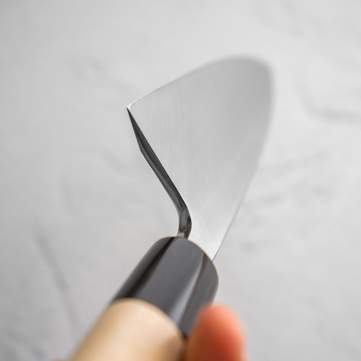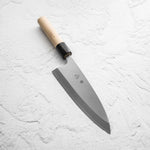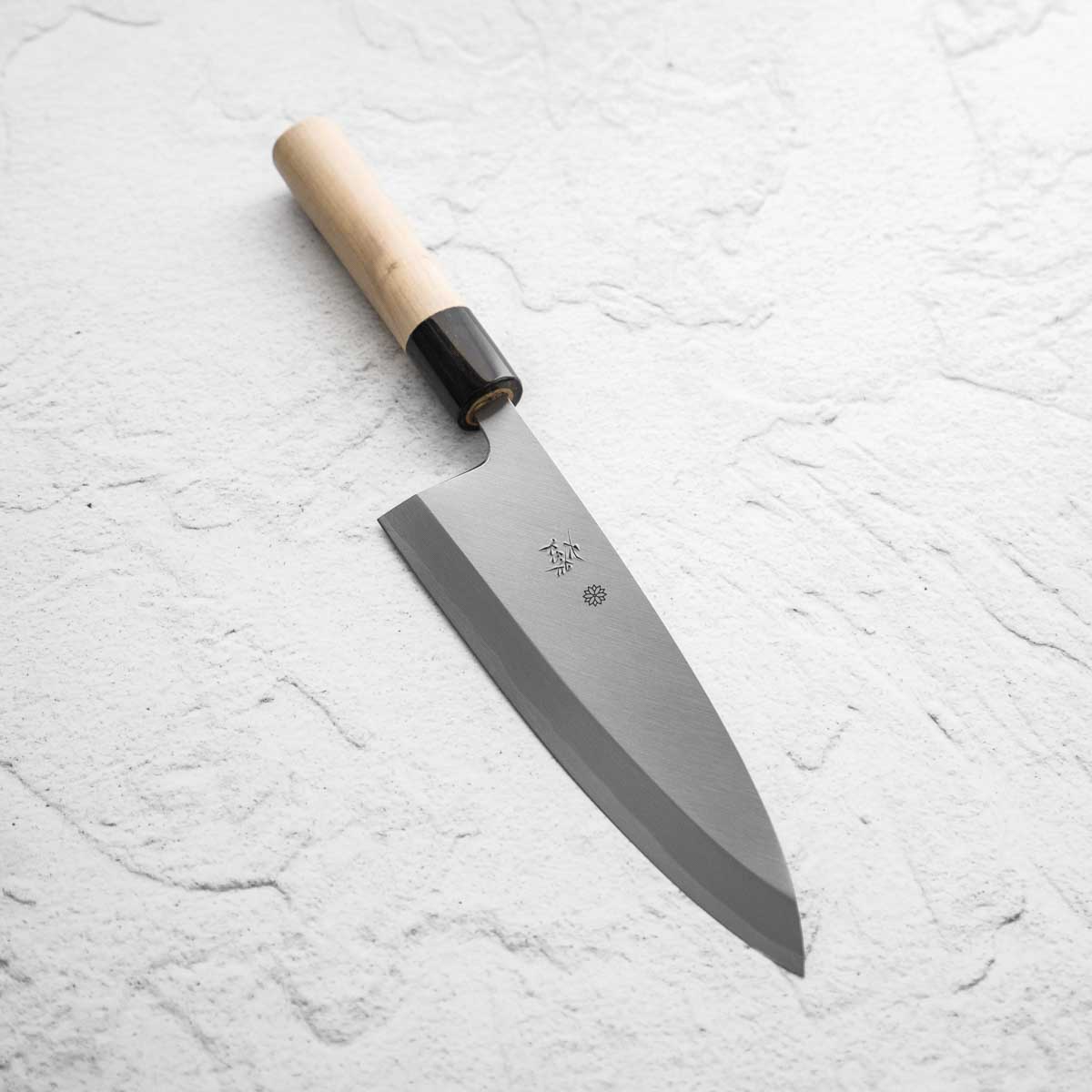 The Deba knife, deeply rooted in Japanese culinary tradition, is a robust, single-bevel knife (sometimes double) primarily designed for fileting fish. Its thick, heavy blade effortlessly glides through fish bones and joints, while preserving delicate flesh. Ideal for seafood preparation, the Deba is a staple in Japanese kitchens for its precision and strength.