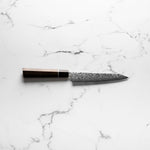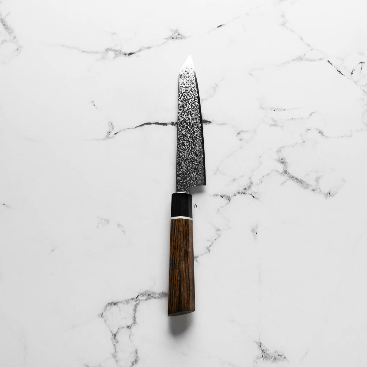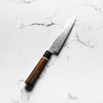 The Petty knife, a quintessential tool in Japanese cuisine, is a smaller utility knife used for precise, delicate tasks. Often considered a smaller sibling to the chef's knife, it excels in hand-held tasks like peeling, trimming, and intricate cutting. Its versatility makes it an essential for detailed culinary work.