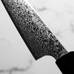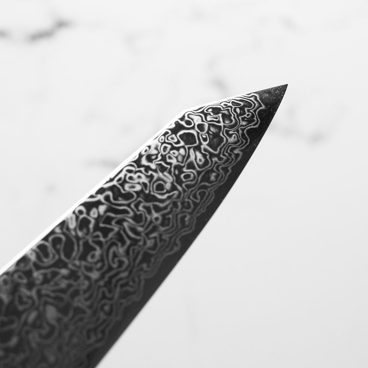 Japanese SG2, also known as R2 steel, is a high-end, powder metallurgy stainless steel and one of the finest knife-making steels available in Japan. It is a favorite of many for its exceptional hardness and edge retention. Its fine, uniform grain structure enables razor-sharp edges, all the while holding an edge for much longer than Carbon steel knives, without needing to be concerned about rust appearing.