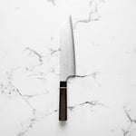 The Bunka knife, a versatile and traditional Japanese kitchen tool, features a distinctive, angular tip and a wide blade. It's designed for precision tasks like slicing, dicing, and chopping. Ideal for handling vegetables, meat, and fish, the Bunka is a multifunctional knife celebrated for its utility and unique aesthetic.