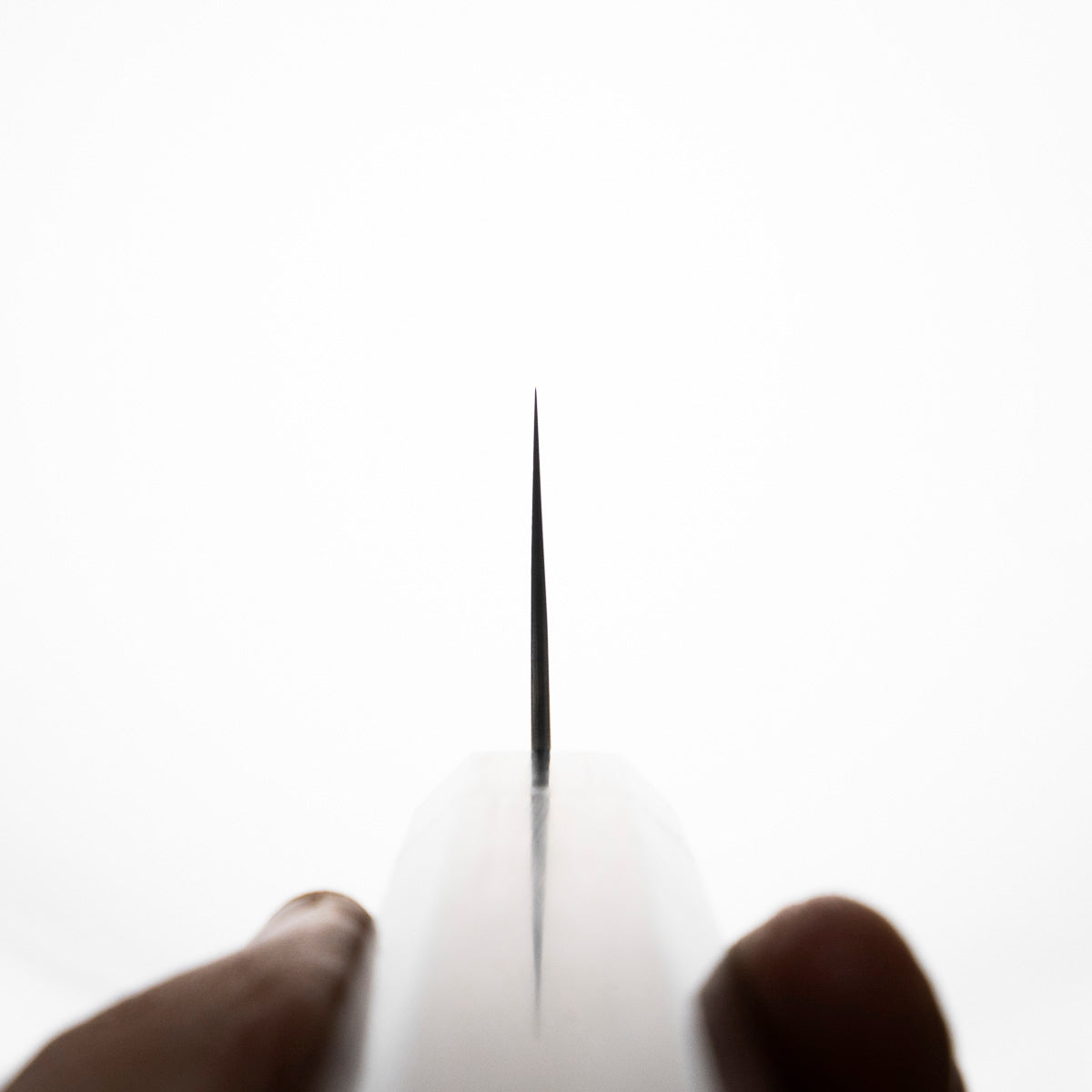 Was recommended by the team at Chef's Edge to purchase this as a good, low maintenance knife. It retains its sharpness for months, even with everyday use. It is comfortable to hold with good grip and the perfect length. Surprisingly strong for how thin the steel is. It came quickly and beautifully packaged. Exceeded my expectations. I am glad I bought this for my partner because it means I get to benefit from it too! Thank you so much.