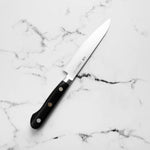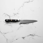 The Petty knife, a quintessential tool in Japanese cuisine, is a smaller utility knife used for precise, delicate tasks. Often considered a smaller sibling to the chef's knife, it excels in hand-held tasks like peeling, trimming, and intricate cutting. Its versatility makes it an essential for detailed culinary work.