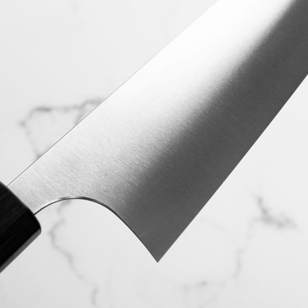 The Bunka knife, a versatile and traditional Japanese kitchen tool, features a distinctive, angular tip and a wide blade. It's designed for precision tasks like slicing, dicing, and chopping. Ideal for handling vegetables, meat, and fish, the Bunka is a multifunctional knife celebrated for its utility and unique aesthetic.