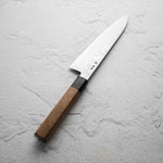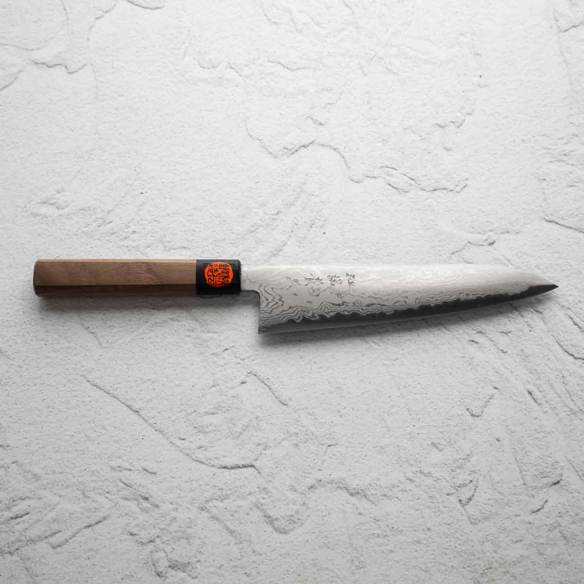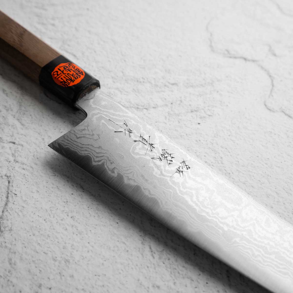 Tanaka honed his skills at the renowned Takefu Knife Village in Fukui Prefecture before establishing his own forge back in Miki. Widely regarded as one of Japan’s most skilled young artisans, he masterfully works with an extensive range of knifemaking steels—from traditional high-carbon (such as Aogami) to advanced powder stainless steels like R2/SG2.