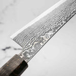 Tanaka honed his skills at the renowned Takefu Knife Village in Fukui Prefecture before establishing his own forge back in Miki. Widely regarded as one of Japan’s most skilled young artisans, he masterfully works with an extensive range of knifemaking steels—from traditional high-carbon (such as Aogami) to advanced powder stainless steels like R2/SG2.