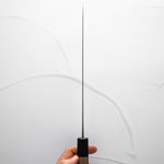 The Sujihiki knife, a traditional Japanese slicer, is designed for carving and fileting. With its long, narrow blade, typically ranging from 240mm to 330mm, it excels in creating clean, smooth cuts through meat and fish. Its length ensures long, uninterrupted strokes, making it perfect for precise slicing tasks.