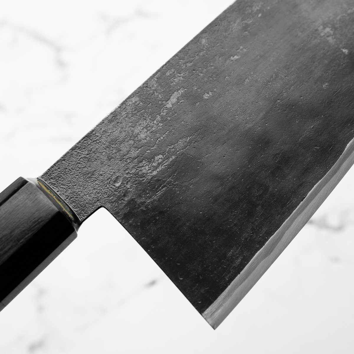 Takeda’s knives are instantly recognizable — tall, kurouchi-finished blades, incredibly lightweight, and ground to an ultra-low bevel that delivers outstanding cutting performance. Often forged from Aogami Super Steel (NAS), these knives are known for holding a razor-sharp edge while being remarkably easy to maintain.