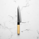 Tojiro knives are typically forged from high-carbon stainless steel, offering exceptional sharpness, edge retention, and corrosion resistance. Each piece is thoughtfully finished — from the polished blade to the ergonomically shaped handle — resulting in a knife that feels intuitive, balanced, and ready for serious use.