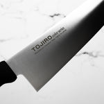 Tojiro knives are typically forged from high-carbon stainless steel, offering exceptional sharpness, edge retention, and corrosion resistance. Each piece is thoughtfully finished — from the polished blade to the ergonomically shaped handle — resulting in a knife that feels intuitive, balanced, and ready for serious use.