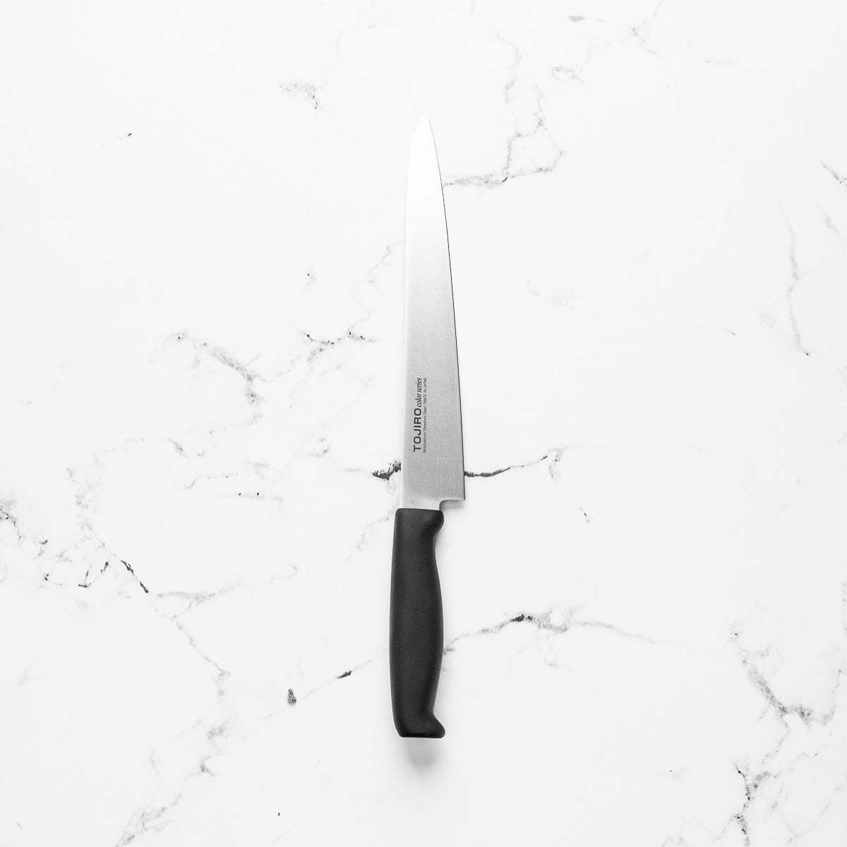 Tojiro knives are typically forged from high-carbon stainless steel, offering exceptional sharpness, edge retention, and corrosion resistance. Each piece is thoughtfully finished — from the polished blade to the ergonomically shaped handle — resulting in a knife that feels intuitive, balanced, and ready for serious use.