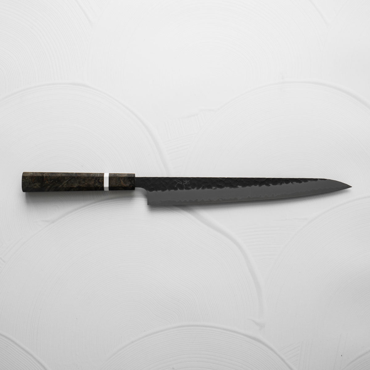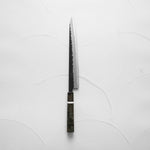 The Sujihiki knife, a traditional Japanese slicer, is designed for carving and fileting. With its long, narrow blade, typically ranging from 240mm to 330mm, it excels in creating clean, smooth cuts through meat and fish. Its length ensures long, uninterrupted strokes, making it perfect for precise slicing tasks.
