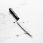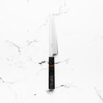 The Petty knife, a quintessential tool in Japanese cuisine, is a smaller utility knife used for precise, delicate tasks. Often considered a smaller sibling to the chef's knife, it excels in hand-held tasks like peeling, trimming, and intricate cutting. Its versatility makes it an essential for detailed culinary work.