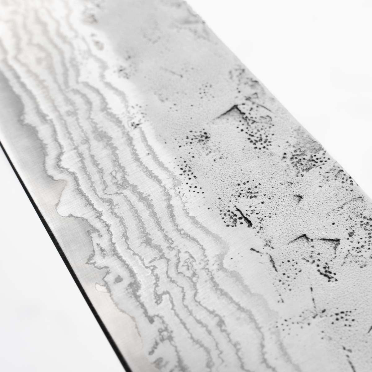 Japanese SLD steel is a semi-stainless steel crafted through advanced metallurgy. It is used often in Sanjo knives, has a non-chippy edge and is extremely tough. This high-carbon steel, enriched with chromium and molybdenum, offers excellent performance, but be mindful not to leave it wet for extended periods.