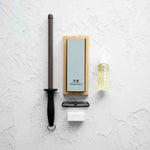 The Knife Maintenance Bundle was designed to offer incredible value for money with a 1000/3000 grit whetstone with base, guide clip and nagura stone for achieving sharp edges on your knives, and a 10" black ceramic steel honing rod to maintain these edges between sharpening.