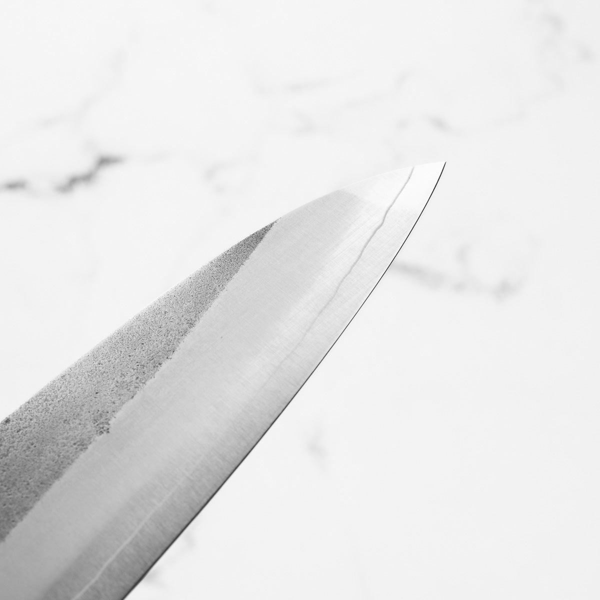 Japanese SKD steel is a high-carbon, semi stainless steel much like Aogami 2 in it’s performance and sharpening feel. It can take an extremely fine edge, has excellent edge retention and is a joy to use when crafted by experienced craftsman. It will still patina lightly over time like other semi-stainless steels, without the added corrosion risk.