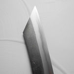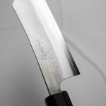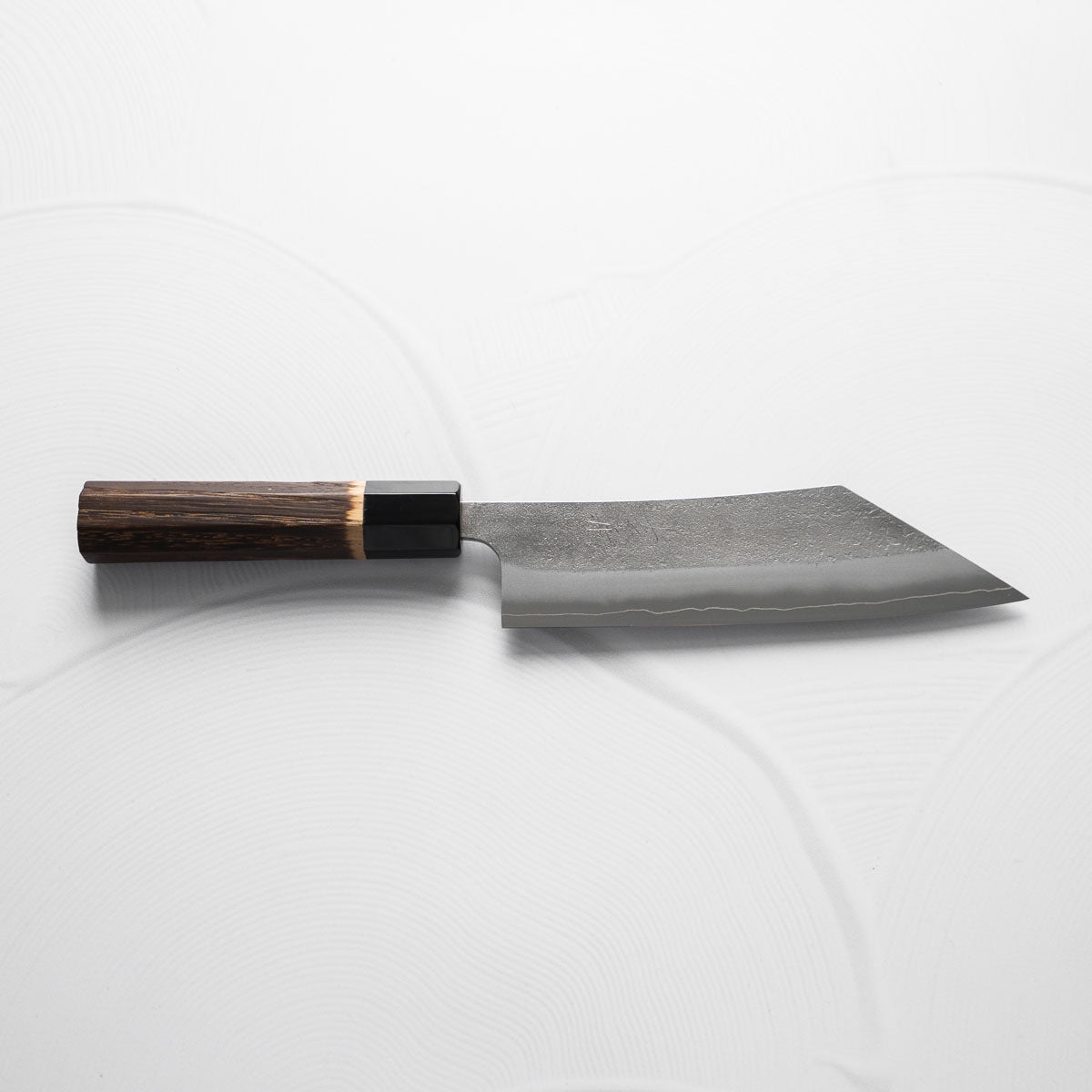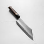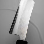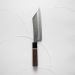 One of their most celebrated offerings is the SKD steel series — featuring a semi-stainless high-carbon core clad in stainless steel. The blades showcase a distinctive wide-bevel grind with a shallow hammer texture that sits stylistically between nashiji and kurouchi finishes. Paired with traditional burnt chestnut handles, each knife reflects Yoshikane’s dedication to consistency, craftsmanship, and timeless design.