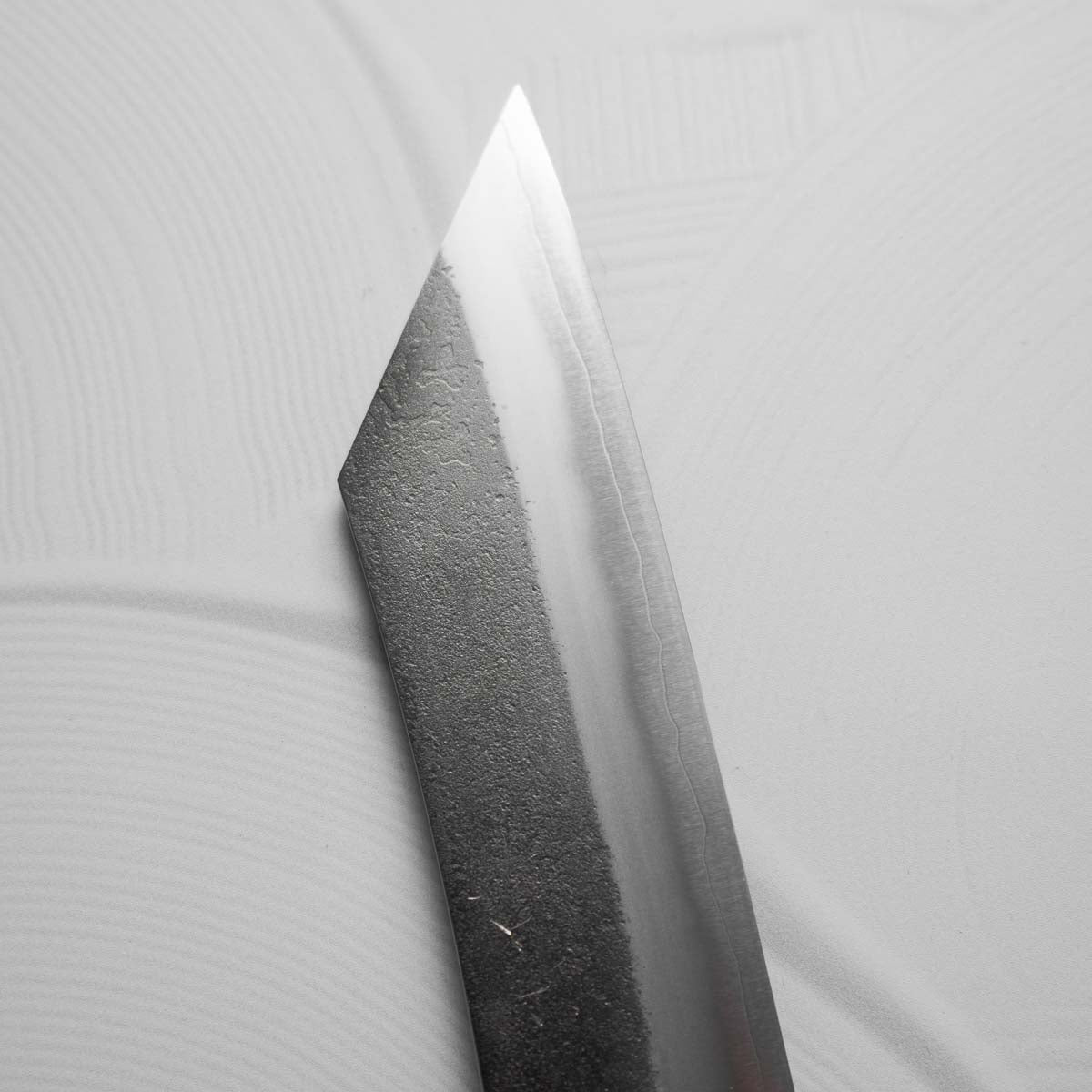 Japanese SKD steel is a high-carbon, semi stainless steel much like Aogami 2 in it’s performance and sharpening feel. It can take an extremely fine edge, has excellent edge retention and is a joy to use when crafted by experienced craftsman. It will still patina lightly over time like other semi-stainless steels, without the added corrosion risk.