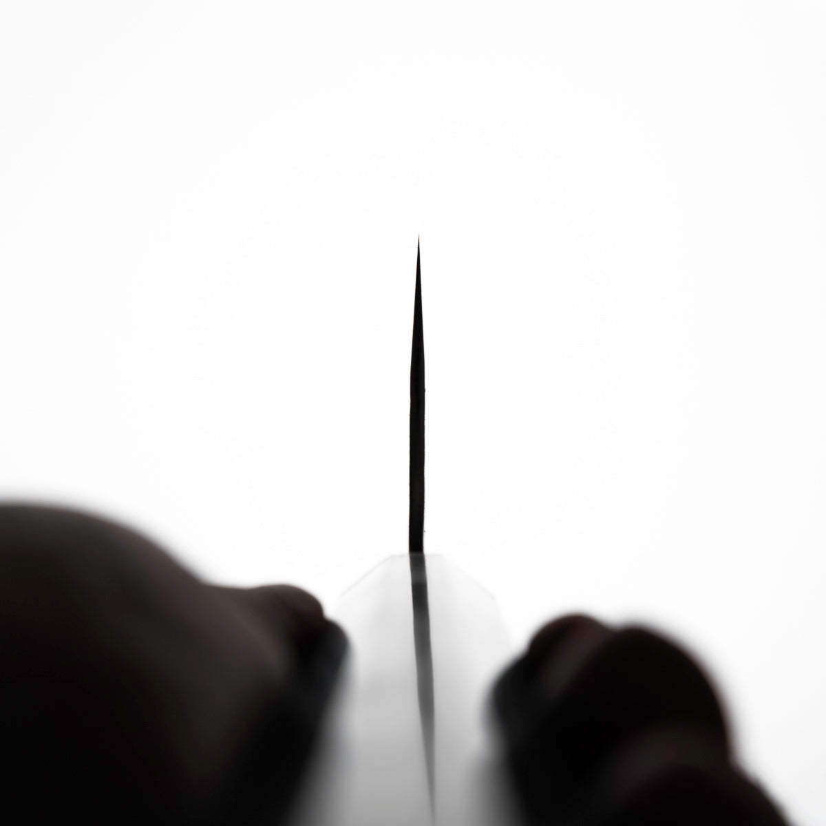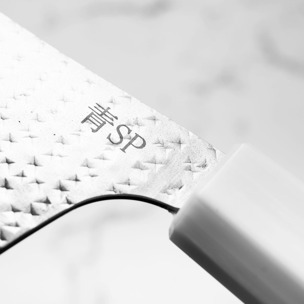 His knives are instantly recognizable for their striking Tsuchime and Suminagashi finishes, thin grinds, and use of high-performance steels such as SG2, HAP40, and stainless-clad Blue Super. Kurosaki’s Fujin series, with its dramatic wind-patterned hammer finish, helped cement his reputation as a blacksmith who blends artistry and technical brilliance in equal measure.