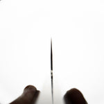 His knives are instantly recognizable for their striking Tsuchime and Suminagashi finishes, thin grinds, and use of high-performance steels such as SG2, HAP40, and stainless-clad Blue Super. Kurosaki’s Fujin series, with its dramatic wind-patterned hammer finish, helped cement his reputation as a blacksmith who blends artistry and technical brilliance in equal measure.