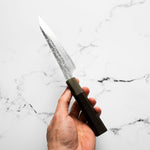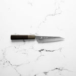 The Petty knife, a quintessential tool in Japanese cuisine, is a smaller utility knife used for precise, delicate tasks. Often considered a smaller sibling to the chef's knife, it excels in hand-held tasks like peeling, trimming, and intricate cutting. Its versatility makes it an essential for detailed culinary work.