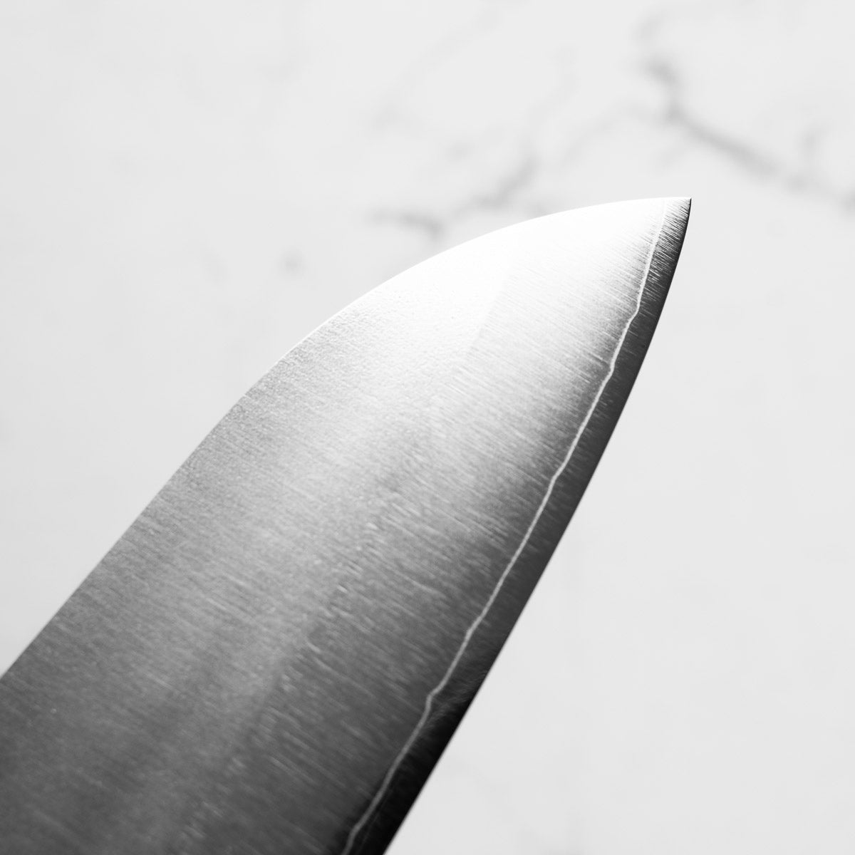 The Santoku knife, a classic in Japanese kitchens, translates to "three virtues," symbolizing its proficiency in slicing, dicing, and mincing. With a shorter, versatile blade and a balanced design, it's ideal for a range of tasks, from cutting meat to chopping vegetables, making it a beloved all-purpose tool.