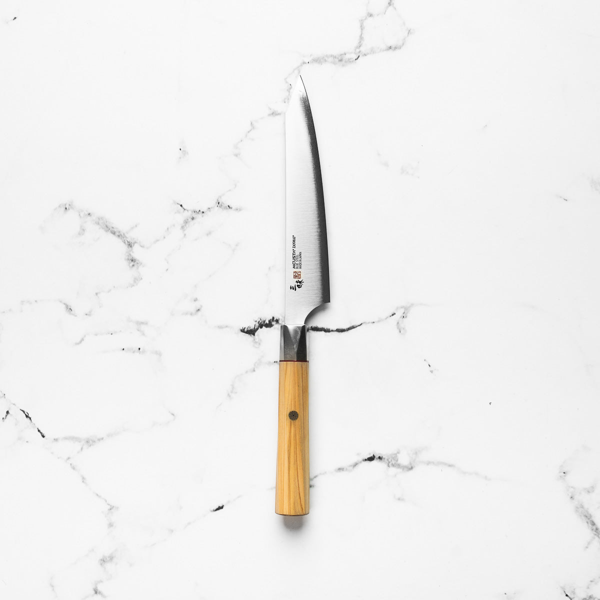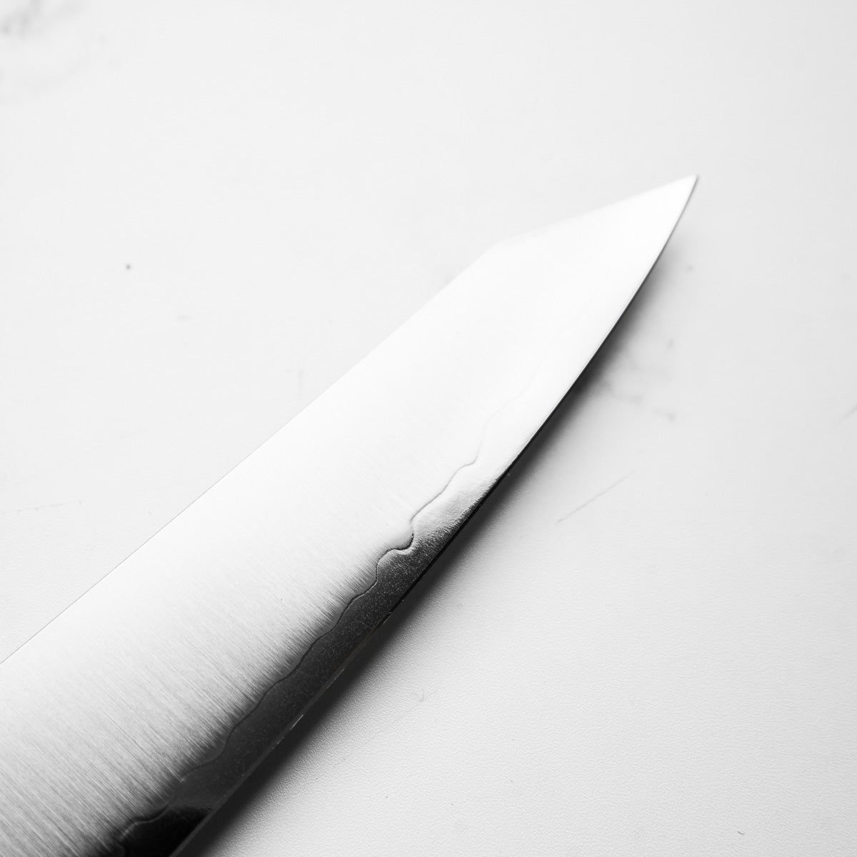 The Petty knife, a quintessential tool in Japanese cuisine, is a smaller utility knife used for precise, delicate tasks. Often considered a smaller sibling to the chef's knife, it excels in hand-held tasks like peeling, trimming, and intricate cutting. Its versatility makes it an essential for detailed culinary work.