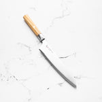 The Gyuto knife, a cornerstone of Japanese culinary tradition, is a versatile, all-purpose chef's knife. Its name, translating to "beef sword," reflects its proficiency in slicing meat and in more modern times vegetables. However, its slightly curved blade excels in chopping, dicing, and mincing, making it indispensable in any kitchen.