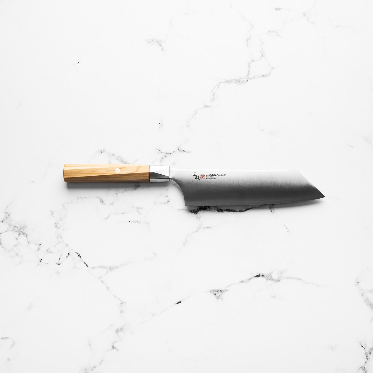 The Bunka knife, a versatile and traditional Japanese kitchen tool, features a distinctive, angular tip and a wide blade. It's designed for precision tasks like slicing, dicing, and chopping. Ideal for handling vegetables, meat, and fish, the Bunka is a multifunctional knife celebrated for its utility and unique aesthetic.